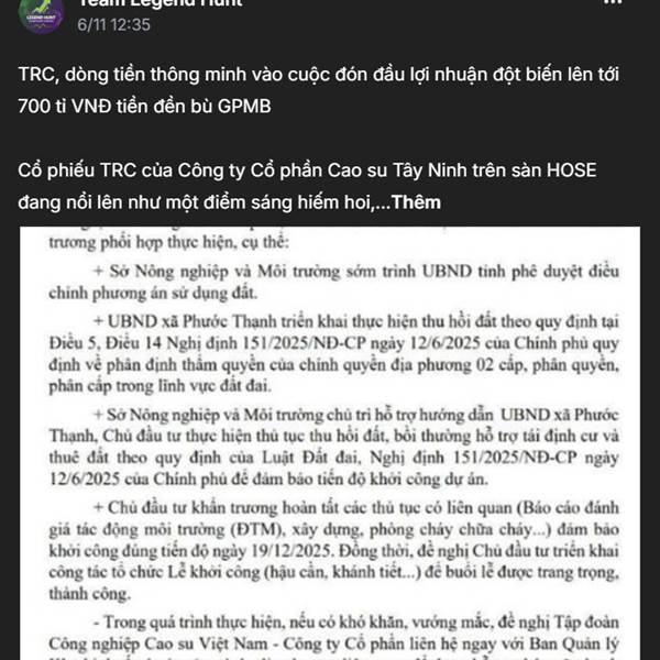 Cụ thể là TRC sắp nhận được tiền bồi thường đất gần 750 tỷ, cả công ty có hơn 2000 tỷ chưa kể xxx, h...Thêm