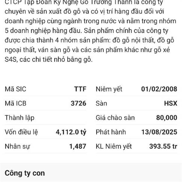 Sở Giao dịch Chứng khoán Thành phố Hồ Chí Minh thông báo về việc giữ nguyên diện cảnh báo đối với cổ phiếu của Công ty Cổ phần Tập đoàn Kỹ nghệ Gỗ Trường Thành như sau: