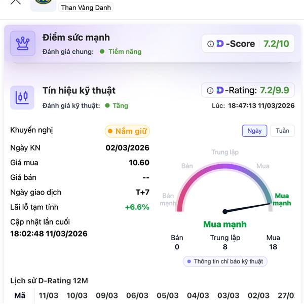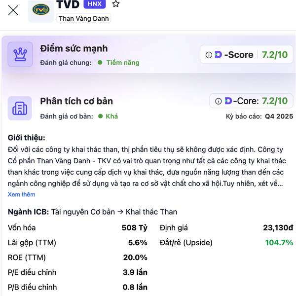 TVD – Than Vàng Danh: tín hiệu đang sáng dần, thiên về giữ và theo dõi thêm