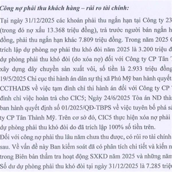 Năm 2025 vnsteel cho phá sản với cty tân thành mỹ, và cty này nợ công ty xây dựng số 5 : 2 tỷ 9 ,