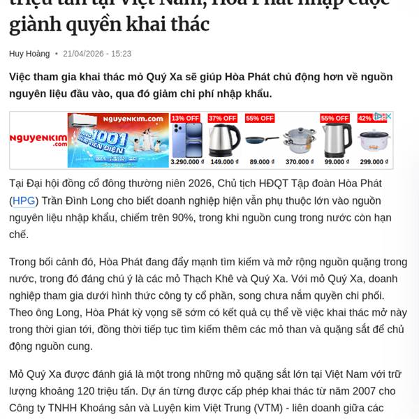 quy mô thép TVN sản xuất chắc ăn đứt cả 2 bố HSG NKG