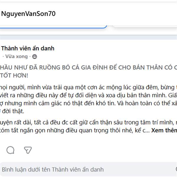 Mình hầu như đã ruồng bỏ cả gia đình để cho bản thân có cơ hội đc sống tốt hơn! Chào mọi người, mình vừa trải qua một cơn ác mộng lúc giữa đêm, bừng tỉnh và muốn viết ra những điều này để tự đối diện v...Thêm