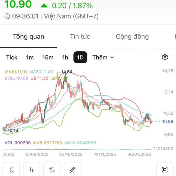 Biểu đồ 12 tháng chưa tăng gì luôn. Qua mấy con nóng nó chỉnh lỗ kép nửa. Chờ ngày mưa tan.