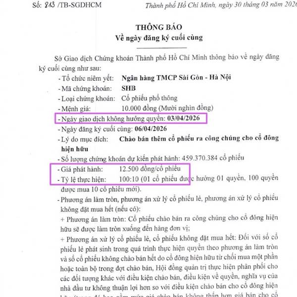 Ngân hàng TMCP Quốc Tế (VIB) vừa công bố tài liệu Đại hội đồng cổ đông thường niên năm 2026 với mục tiêu lợi nhuận 11.550 tỷ đồng, dự chi gần 19% cổ tức và hoàn tất triển khai Basel III theo phương pháp tiêu chuẩn theo Thông tư 14/2025/TT-NHNN. VIB dự kiến tổ chức ĐHĐCĐ thường niên vào ngày 8/4 tại TP. Hồ Chí Minh.