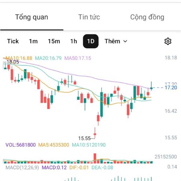 VIB hiện đang giao dịch quanh vùng 17.0 – 17.2, đúng khu vực MA50 và cũng là đỉnh ngắn hạn gần nhất. Sau nhịp hồi từ đáy 15.6, cổ phiếu đã có sự cải thiện về động lượng khi AO chuyển sang dương và RSI...Thêm