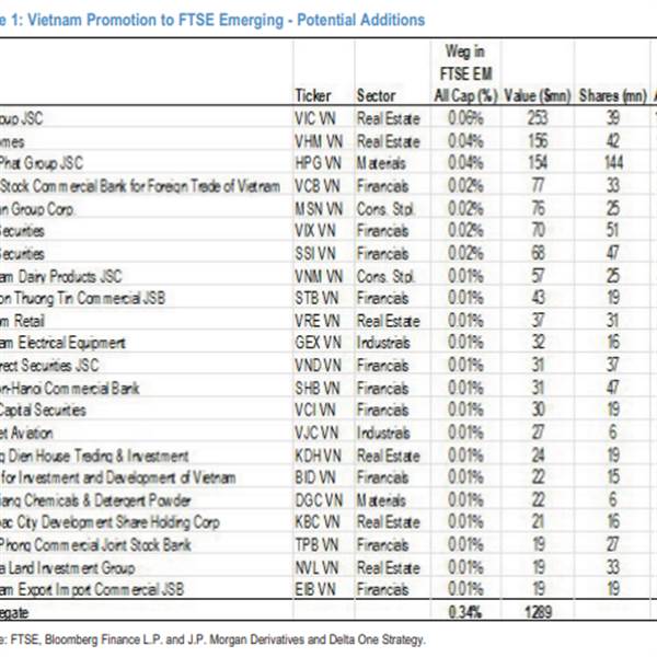 Báo cáo gần nhất của JP morgan: Chiến lược Cổ phiếu Việt Nam – Kỷ nguyên mới đang nổi lên FTSE xác nhận sẽ nâng hạng thị trường chứng khoán Việt Nam lên nhóm Thị trường mới nổi thứ cấp (Secondary Emerg...Thêm