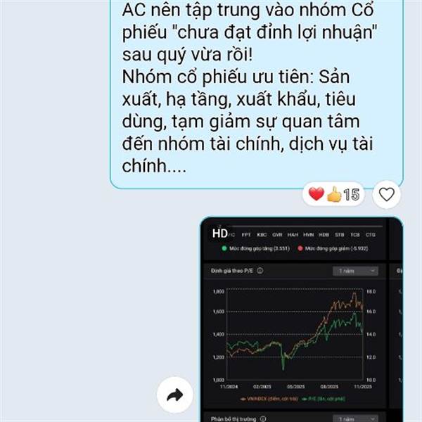 - Định giá hiện tại của thị trường cũng đang thấp so với thu nhập(14 lần) sau khi các DN ra báo cáo kinh doanh...Thêm