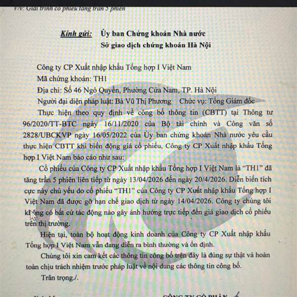 Sở Giao dịch Chứng khoán TP.HCM công bố Quyết định về việc đưa cổ phiếu Công ty Cổ phần Đầu tư Thương mại Xuất nhập khẩu Việt Phát vào diện cảnh báo (do LNST chưa phân phối âm) kể từ ngày 14/04/2026 như sau: