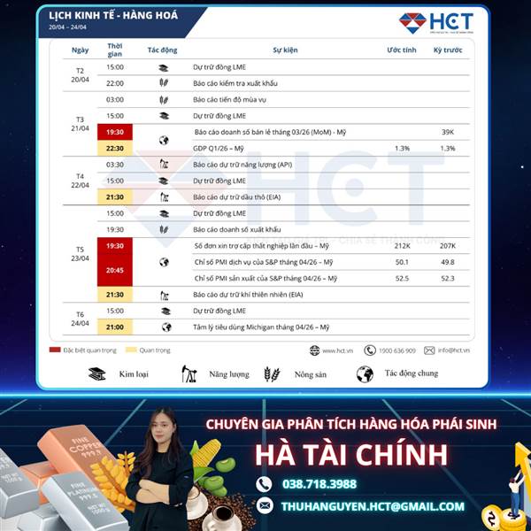 LỊCH SỰ KIỆN KINH TẾ & ĐỊA CHÍNH TRỊ TUẦN 20 - 24/04 ----- 1. Tâm điểm Vĩ mô: Nút thắt Eo biển Hormuz & Cột mốc Thứ Tư ▪ Biến động tại Hormuz: Bất chấp các tuyên bố ngoại giao về việc duy trì lưu thông, ...Thêm