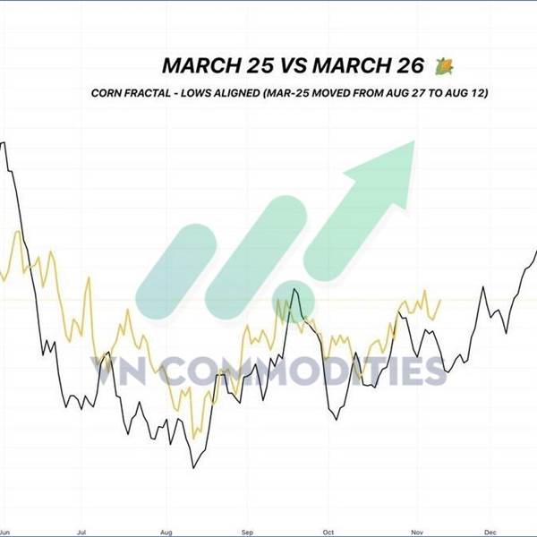 So sánh hợp đồng ngô kỳ hạn tháng 3/2025 và tháng 3/2026 cho thấy hai niên vụ đang đi theo một mô hình gần như giống hệt nhau: