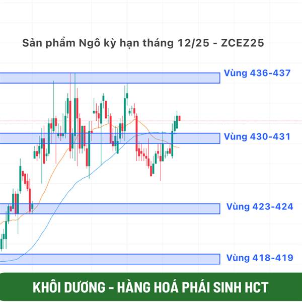 Giá Ngô kỳ hạn tháng 12/2025 (ZCEZ25) đang duy trì xu hướng tăng trung hạn, khi EMA50 nằm trên EMA150, phản ánh lực ...Thêm