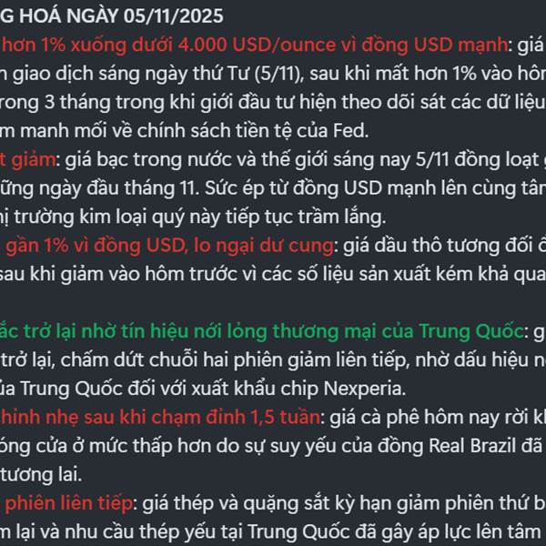 THỊ TRƯỜNG HÀNG HOÁ NGÀY 05/11/2025