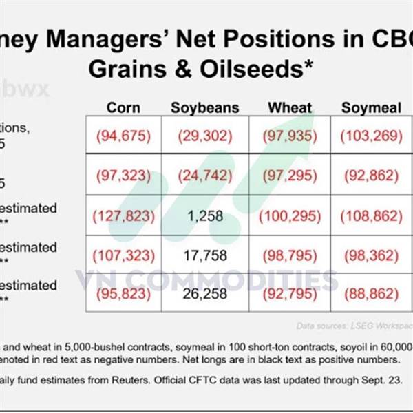 Ở khô đậu, lượng bán ròng kỷ lục từ tháng 8 cũng được cắt giảm, giá tăng hơn 7% kể từ 14/10.