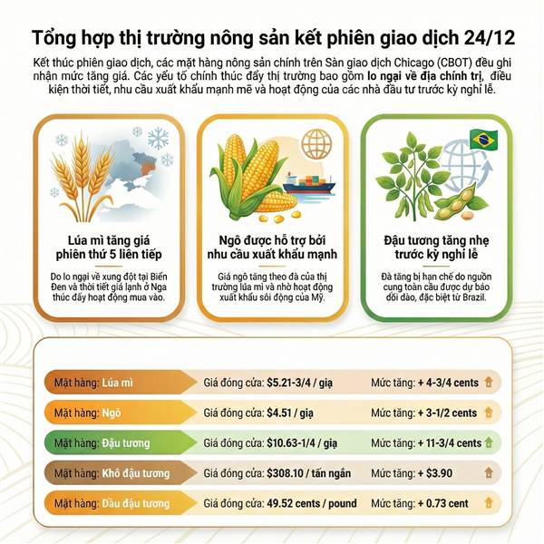 Tổng hợp thị trường nông sản kết phiên giao dịch 24/12