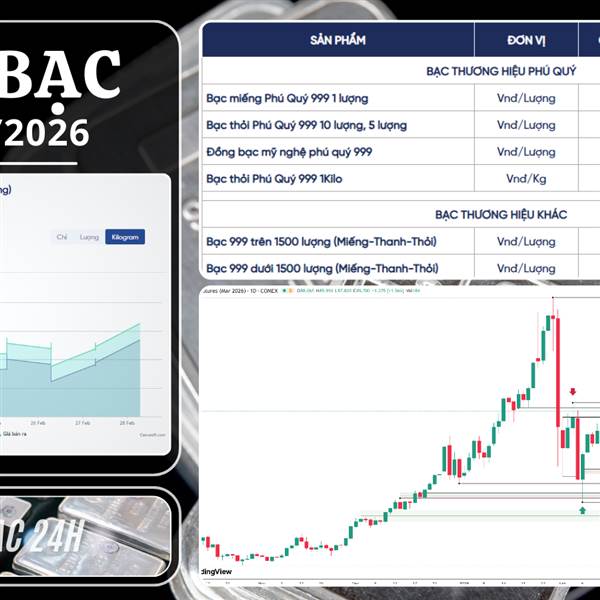 BẠC BỨT PHÁ VƯỢT 92 USD: "CƠN LỐC" LẠM PHÁT ĐẨY GIÁ HƯỚNG TỚI CỘT MỐC 100 USD -------- Thị trường kim loại quý đang chứng kiến một cuộc bứt tốc ngoạn mục của bạc khi các biến số kinh tế Mỹ tạo ra "cơn b...Thêm