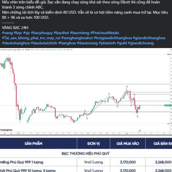 PHÂN TÍCH KỸ THUẬT BẠC NGÀY 11/03/2026 ------- Vùng mua Vàng Bạc 24H ( Khánh Trung ) đã chia sẻ trước đó 80 - 82 USD. Chạm mục tiêu tại 88 - 90 USD. ------- Xu hướng bạc hiện tại gặp cản chéo lớn tại vùng...Thêm
