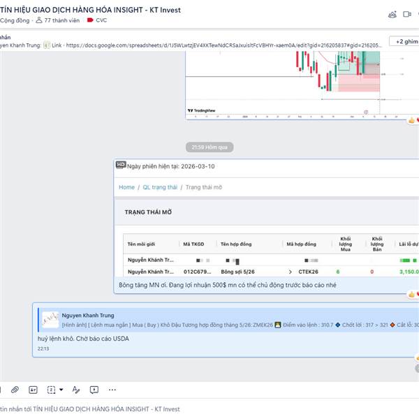 NHẬN ĐỊNH THỊ TRƯỜNG HÀNG HÓA 11/03/2026 + LỢI NHUẬN BÔNG SỢI hơn 500 $/1HĐ + BẠC ĐẠT MỤC TIÊU 88 USD ( LỢI NHUẬN 8000 USD ) + TÌM KIẾM CƠ HỘI GIAO DỊCH TIỀM NĂNG -----------------------------------------...Thêm
