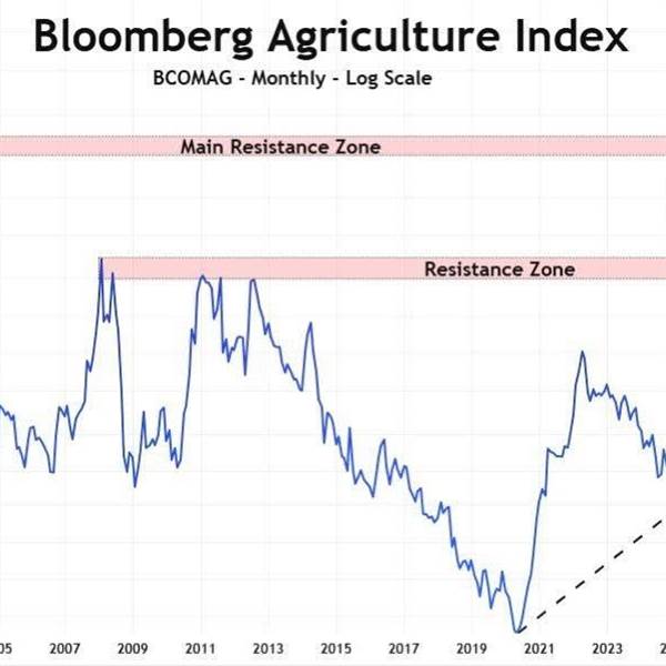 Chỉ số Nông nghiệp Bloomberg đang âm thầm chuẩn bị cho một đợt tăng mạnh. Chúng ta đang tiến gần đến đường xu hướng dài hạn đã được duy trì kể từ mức thấp nhất năm 2020.