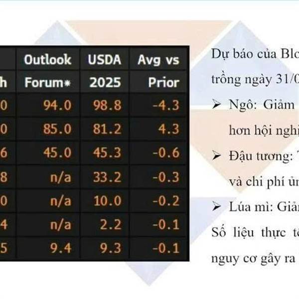 Ngô: Giá có xu hướng hồi phục nhẹ nếu diện tích thực tế thấp hơn mức 94.5 triệu mẫu; tuy nhiên, áp lực tồn kho cao (dự kiến trên 9 tỷ giạ) sẽ kìm hãm đà tăng...Thêm