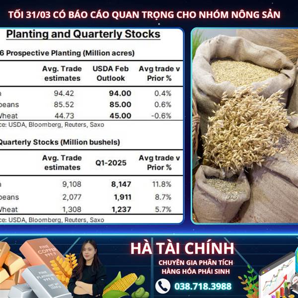 Hôm nay 31/3, USDA Sẽ công bố hai báo cáo quan trọng: Báo cáo Dự kiến Gieo trồng của Mỹ và Báo cáo Tồn kho Ngũ cốc Hàng quý. Cả hai báo cáo này cùng nhau cung cấp bức tranh toàn diện đầu tiên về dự ...Thêm