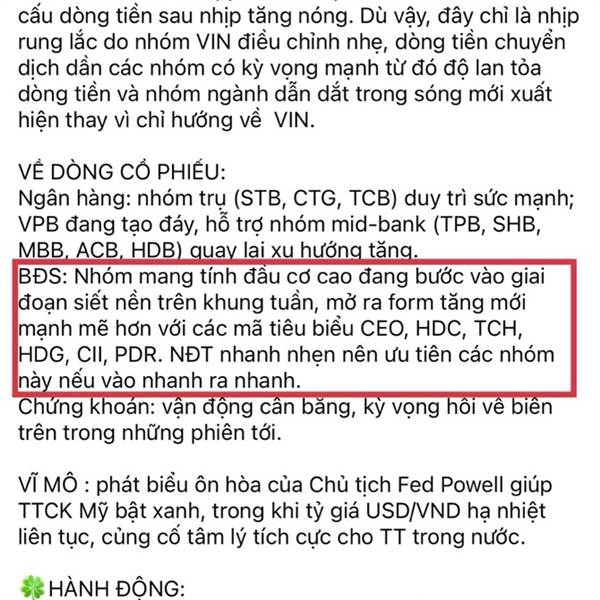 Về Vnindex cá nhân TEAM CKCA đánh giá thị trường đã bứt thoát khỏi vùng tích lũy phía dưới . - Phiên 17/10 đa số đến từ nhóm VIN trả điểm tạo yếu tố chốt lời nhẹ ở các nhóm ...Thêm
