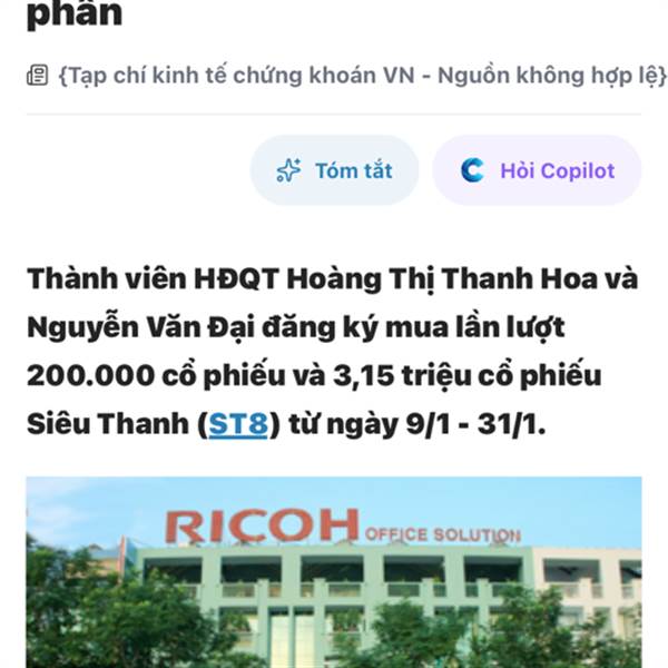 Trước gia đình chủ tịch st8 cầm hầu như toàn bộ cổ phiếu muốn thoát hết vốn lên mới nhở tay hoazg chuyên trakder chứng khoáng nhờ danh tiếng hoazg đã kéo giá từ 7k lên 30k chia cổ tức 8,5k các bạn thử...Thêm