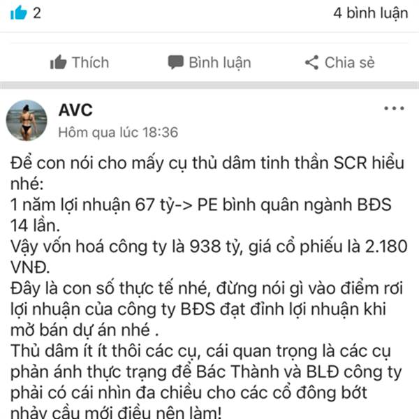 Tính được xem giá cổ phiếu SCR “