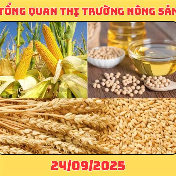 Tổng quan thị trường Nông sản ngày 24/09: Lúa mì hồi phục nhẹ, đậu tương và ngô giảm giá