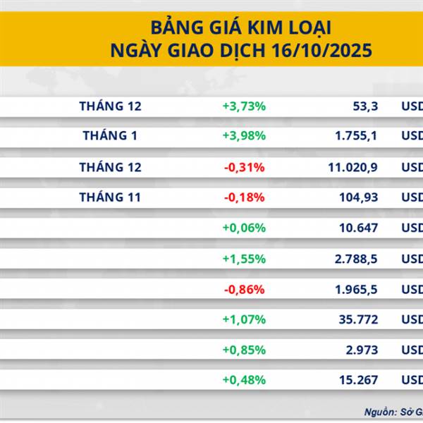 Thị trường hàng hóa toàn cầu tiếp tục lan tỏa sắc xanh, khi bạch kim (Platinum) trở thành tâm điểm trong phiên giao dịch n...Thêm