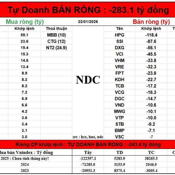 Năm Dòng Kẻ NDC: 22/1/2026 - Nhận định thị trường Chứng khoán hôm nay - NDC Chứng Khoán, Crypto, Vàng