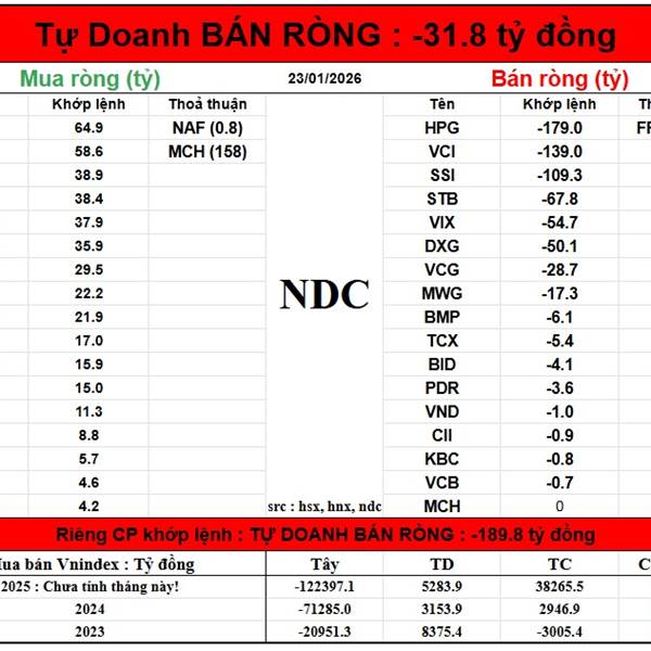 Năm Dòng Kẻ NDC: 23/1/2026 - Nhận định thị trường Chứng khoán hôm nay - NDC Chứng Khoán, Crypto, Vàng