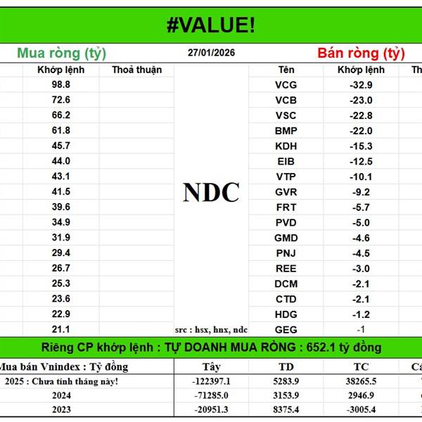 Năm Dòng Kẻ NDC: 27/1/2026 - Nhận định thị trường Chứng khoán hôm nay - NDC Chứng Khoán, Crypto, Vàng