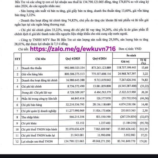 Quý 4/2025, DOHACO lãi sau thuế gần 135 tỷ đồng, tăng vọt 175% so với cùng kỳ. Doanh thu đạt 992 tỷ (+13,6%) nhờ sản lượng, giá bán tăng và quản lý tốt chi phí tài chính.
