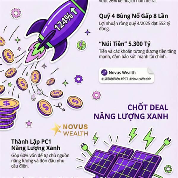 Năm 2025, PC1 đạt lãi ròng 1.050 tỷ đồng (+124%), vượt 26% kế hoạch trên doanh thu 13.085 tỷ. Tài sản tăng lên 24.500 tỷ đồng với lượng tiền mặt dồi dào. Tập đoàn đang tái cơ cấu vốn và mở rộng ...Thêm