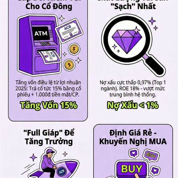 ACB dự kiến phát hành cổ phiếu trả cổ tức tỷ lệ 15% từ nguồn lợi nhuận để lại năm 2025. Đây không chỉ là chia thưởng, mà là...Thêm