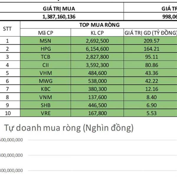 Nay tự doanh lại ăn vã: 5 triệu cổ, top 1 mua dòng luôn. Thế là 3 hôm tự doanh mua dòng top đầu liên tiếp!