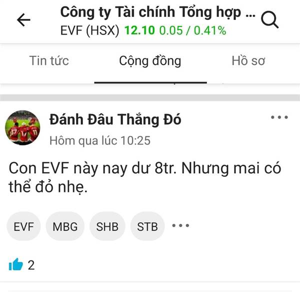 Con EVF này nay dư 8tr. Nhưng mai có thể đỏ nhẹ.