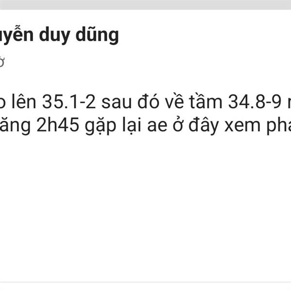 Mấy cái tk hô tím tím mấy hôm giờ không biết đi đâu hết rồi nhỉ. Ko biết còn thở ko. Hôm nay xuống 30-32 nhé. P/s: tăng 1-2% sau nhịp giảm 10% bọn nó lên bài úp chen, giảm thì hụp lặn bảo bảo mua thêm....Thêm
