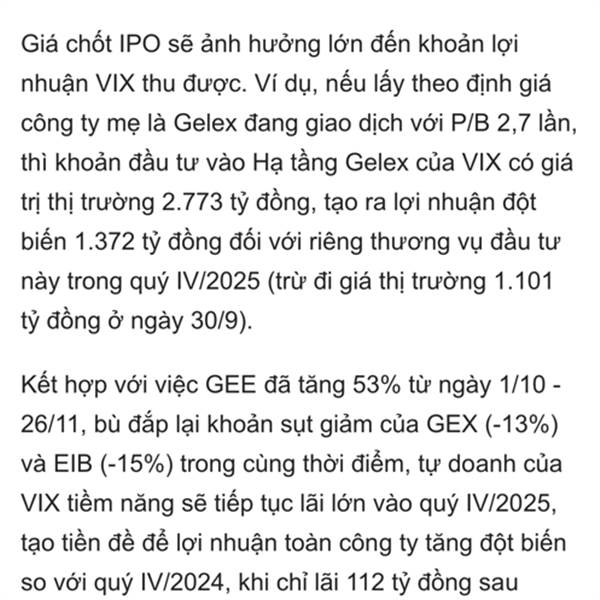 Chốt ngày đấu giá 31/12/2025💜 VIX chắc chắc sẽ có lợi nhuận tối thiểu 1400 tỷ từ GEI trong Q4/2025😍 Vậy nương theo đội LÁI tàn bạo nhất 3 sàn đưa em nó thiết lập đỉnh mới 2026😝