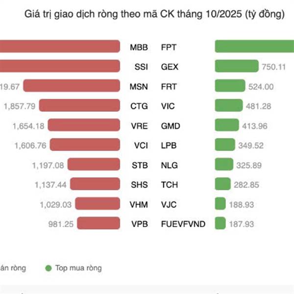 🔥 FPT – Điểm sáng giữa làn sóng bán ròng! 🔥 Tháng 10/2025, khối ngoại tiếp tục bán ròng 23.273 tỷ đồng, nhưng bất ngờ mua ròng mạnh FPT hơn 2.145 tỷ – trái ngược với các mã lớn như MBB, SSI, MSN bị b...Thêm