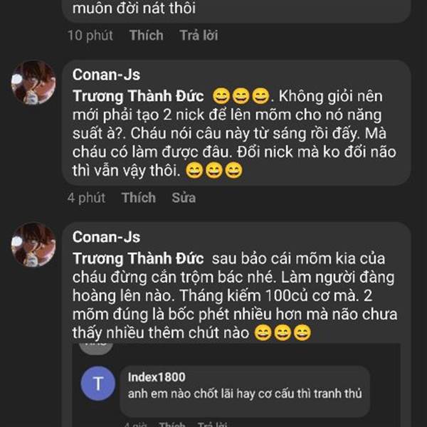 2 nick là một, chuyên đi hô hào, bốc phét, hô mua nhưng tay bán. Tháng khoe kiếm 100 củ. Tạo 3 nick chắc 150 củ. Ông nào mới vào thì chú ý kẻo bị lừa nha. 😄😄😄. Tên Đức nhưng ko thấy đức lắm