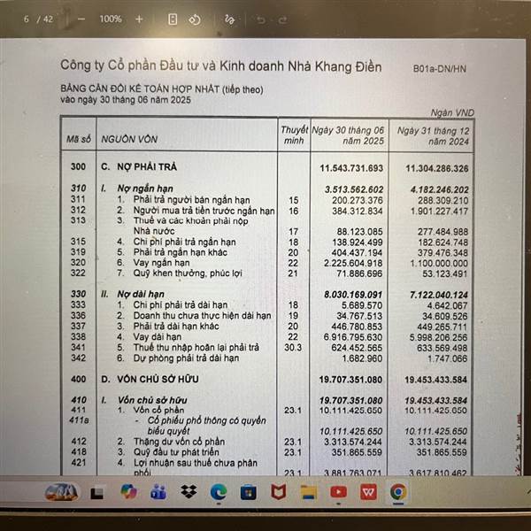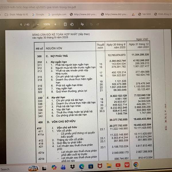 Chú ý phần nợ vay dài hạn và ngắn hạn 2 quí gần nhất