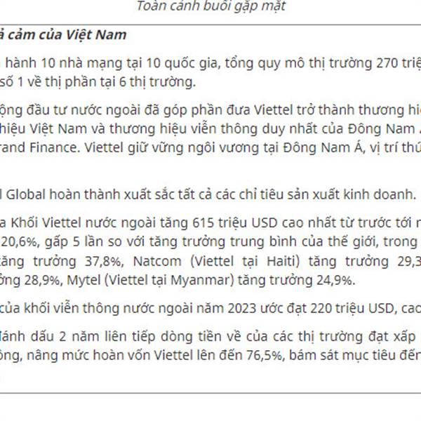 Trong năm 2023, Viettel Global hoàn thành xuất sắc tất cả các chỉ tiêu sản xuất kinh doanh.