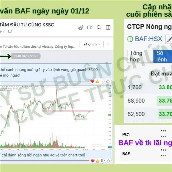 Hôm qua (ngày 2/12) danh mục VIP đã có PC1 tăng trần rồi, hôm nay (3/12) liệu có đến lượt BAF tím không nhỉ? BAF mới mở vị thế hôm kia (1/12), đã tăng 3 ngày liên tiếp, cuối phiên sáng nay đã tăng thê...Thêm