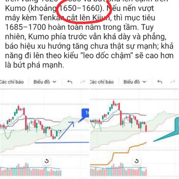 Tuần vừa rồi VN-Index đã tạo một nền hỗ trợ khá rõ quanh vùng 1605–1615, chính là đáy của Kumo hiện tại. Giá bật lên từ biên dưới mây cho thấy lực bán suy yếu và bên mua bắt đầu phản công nhẹ. Tenkan-...Thêm