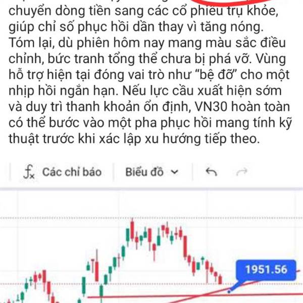 Phiên hôm nay VN-Index tiếp tục điều chỉnh và lùi về đúng vùng hỗ trợ quan trọng quanh 1745–1755, nơi hội tụ trendline tăng trung hạn và vùng tích lũy trước đó. Đáng chú ý là áp lực bán không gia tăng...Thêm