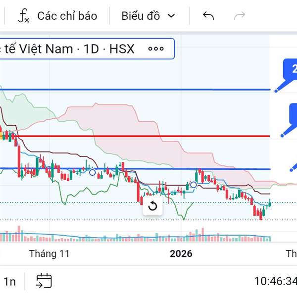 VTO đang vận động trong giai đoạn tích lũy sau nhịp hồi, dao động quanh vùng 11.6–12.2. Sau cú bật mạnh đầu tháng 2, giá điều chỉnh và đi ngang sát mây Ichimoku, cho thấy trạng thái cân bằng cung cầu....Thêm