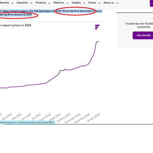 Tặng anh em cái chart giá Tungsten vận động trong 2025. Năm 2025 tăng 210% với mốc là 140. Đến nay 20.1.2026 đang neo ở 158. Tức là chưa hết tháng 1 thêm 10%. Vậy mà MSR thì vận động như cái *** ... k...