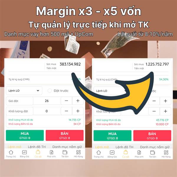 Vay NVL tỷ lệ cao, trực tiếp trên tk chứng khoán không qua trung gian
