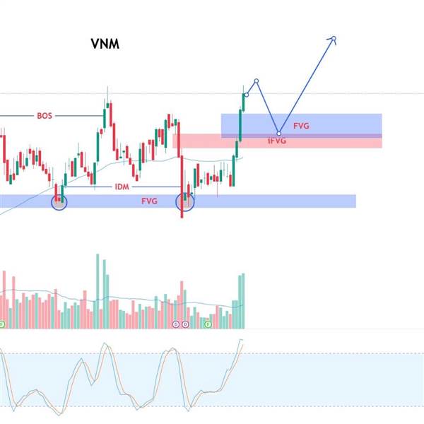 - VNM bật mạnh từ IDM + FVG 56–57, cho thấy lực mua chủ động quay lại.